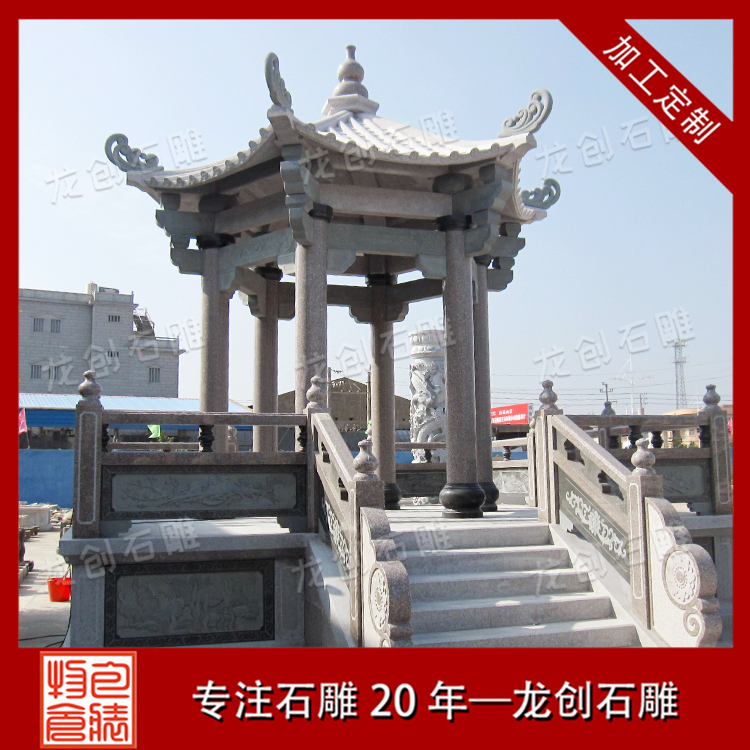 石雕亭子的平面組成比較單純,除柱子、坐凳(椅)、欄干,有時也有一段墻體、桌、碑、井、鏡、匾等。