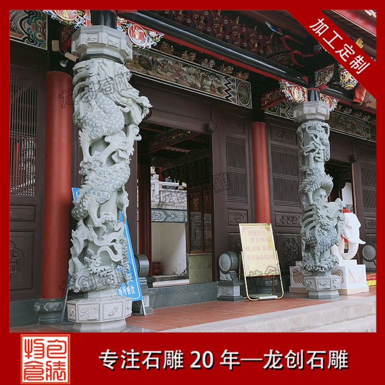 常見寺廟龍柱的制造石材有青石、白石以及其他花崗巖石料,如果雕工要求很復雜的,一般是以青石為原材料,青石的石料單價也要貴很多。做工簡單的,則一般建議用普通的白石即可。普通的白石龍柱會比較便宜,一般三四萬塊就能買到一對合適的3米高龍柱,以浮雕技藝為主。而真正價格較高的龍柱則一般是青石龍柱。龍柱一般有單龍和雙龍之分,雙龍的略貴一些,單龍的便宜一點。龍柱上面除了雕刻龍外,還會雕刻很多其他圖案。中華民族的圖騰是龍圖騰,中國人是龍的傳人,所以龍柱是無論什么國內(nèi)宗教場所、公眾場所都會擺立的。