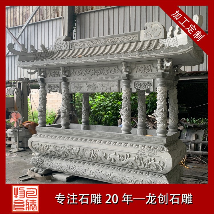 適用場景:花崗巖石雕香爐常用于大型寺廟、佛堂等場合,其堅固耐用的特性能夠經受住風吹雨打,歷久彌新。
