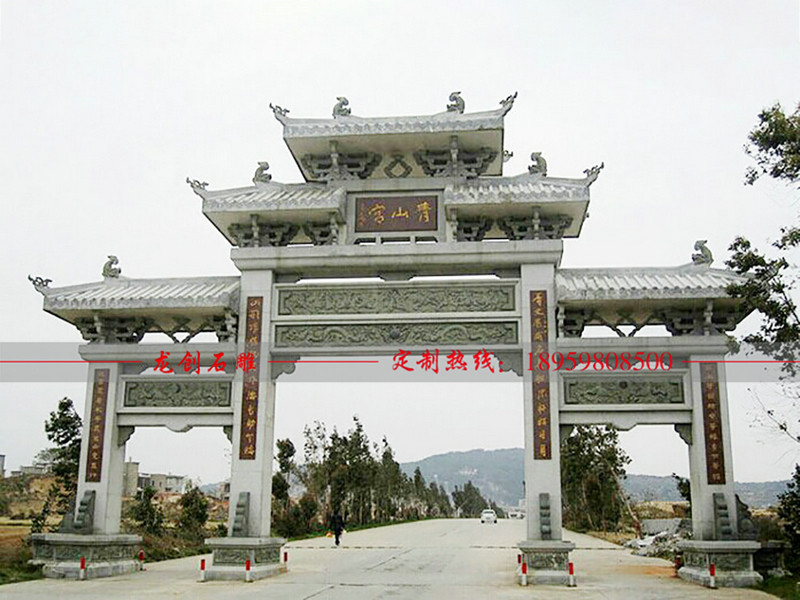 石雕石頭牌坊建筑中的石牌坊雕刻集合傳統技藝,將寓意美好吉祥、幸福安康等各種事物與民間技藝融為一體,從這些石牌坊浮雕、和石牌坊獅子雕刻部件不僅能夠看出人們對美好生活的向往與追求,也映射出傳統藝人的高超技藝。石雕石頭牌坊不僅體現了建筑的工藝特色,其建筑及地理位置也十分講究風水,實際上慎重考慮建筑外部自然環境的選擇,而后又發展人為創造理想的小環境。