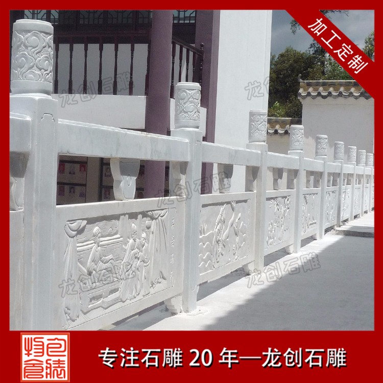 石材浮雕是一種在天然石材上表現浮雕技法的工藝品,在人們的生活中隨處可見。如別墅墻浮雕、寺廟浮雕、石材浮雕欄桿等。今天我們要了解的是石材浮雕欄桿制作及雕刻圖案,現在石欄桿和浮雕的結合使安裝區域多了一道風景線。