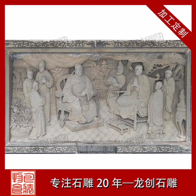 石材浮雕加工定制除了墻體浮雕壁畫雕刻外,還常集中在墻體的基座、墻身、墻檐、墻帽等處,無論是院內的院墻、墻頂的女兒墻還是大門旁的翼墻我們都能看到。體基座一般都由磚砌筑成須彌座樣式,而為了防水、美觀,也經常由石材筑成。基座常雕出虎牙形、卷草形圖案。墻身、墻檐、墻帽等處則是雕刻較多的地方,如采用多層浮雕、鏤空雕雕出場景深遠的美麗景色、戲文故事等,墻帽下檐雕出如連珠混、卷草彎等多種裝飾浮雕壁畫圖案。