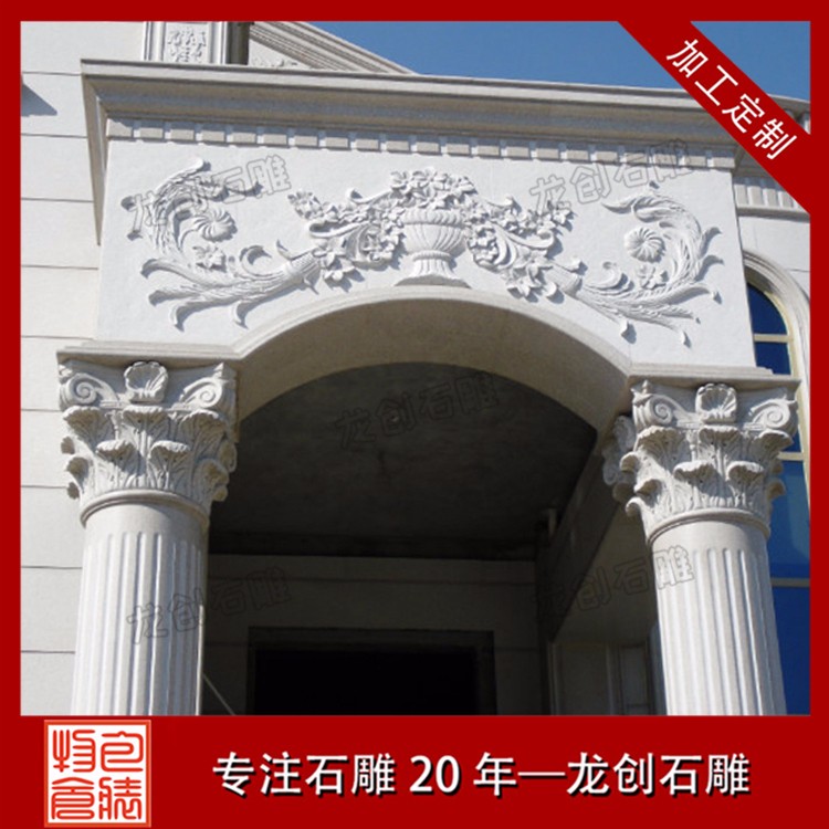 歐式別墅外墻石材干掛雕刻,主要是精選國內外優良石材,并經設計師精心設計和惠安崇武的雕刻師傅精雕細琢后而成的石材產品。產品設計主要來源于歐式建筑,大量地運用山形墻(往往飾以花草或人物浮雕),古希臘、古羅馬的五種柱式,各式的半圓形券,尖券, 草裝飾,漩渦裝飾,怪獸裝飾,人物浮雕或者公司大樓的LOGO裝飾。營造了奢華而莊各式的門套、窗套及楔形拱石,拱廊、象鼻等等;墻面、陽臺等處常飾以各式的花重的別墅外觀和高樓外墻。
