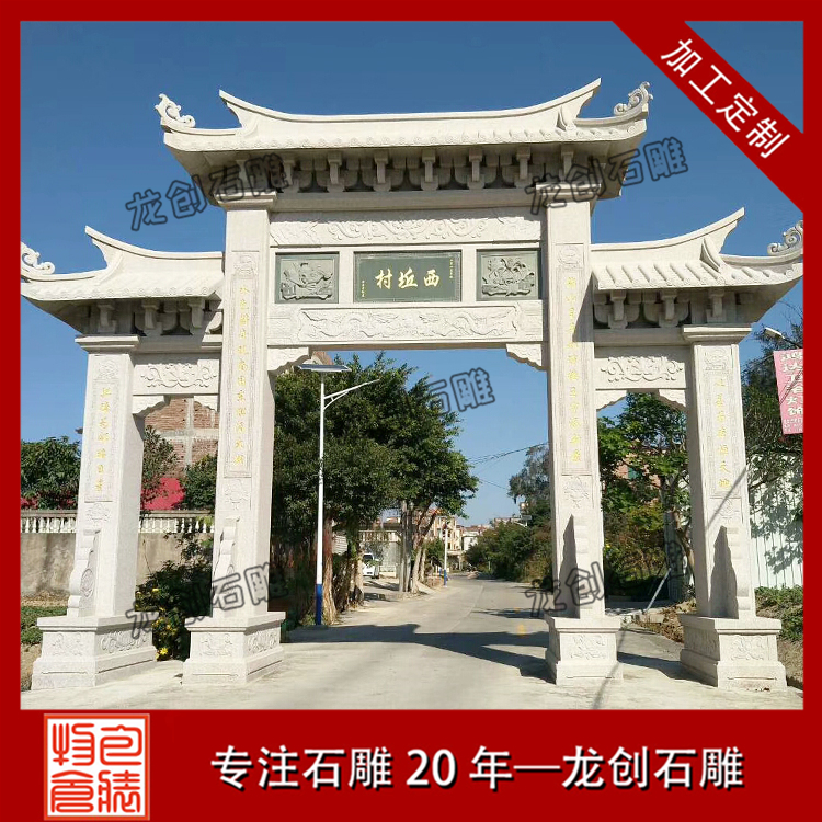 國(guó)內(nèi)的村頭石牌樓從漢代就開(kāi)始出現(xiàn),到了唐宋時(shí)代,中國(guó)的農(nóng)村石牌樓的雕刻技術(shù)已經(jīng)達(dá)到的極高,而且村莊石牌樓往往被人們來(lái)紀(jì)念某事,所以都會(huì)將紀(jì)念的事情雕刻在牌坊上,這些加工制作手法也充分豐富了農(nóng)村石牌樓的文化內(nèi)涵,同時(shí)也讓整座農(nóng)村石牌樓的藝術(shù)氣息都提升上去。